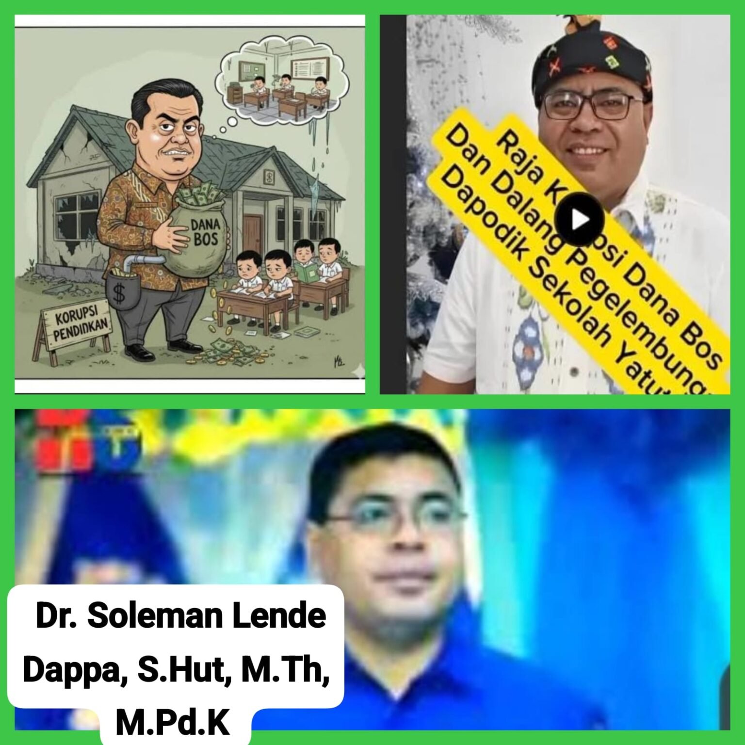 Modus Operandi: Korupsi pendidikan terjadi mulai dari tingkat sekolah Dasar – SMP hingga SMA Milik Yayasan Tunas Timur yang beralamat di Sumba Barat daya mencakup penyalahgunaan dana BOS, pungutan liar (pungli), manipulasi Data siswa, hingga korup dalam proyek pengadaan digitalisasi sekolah.